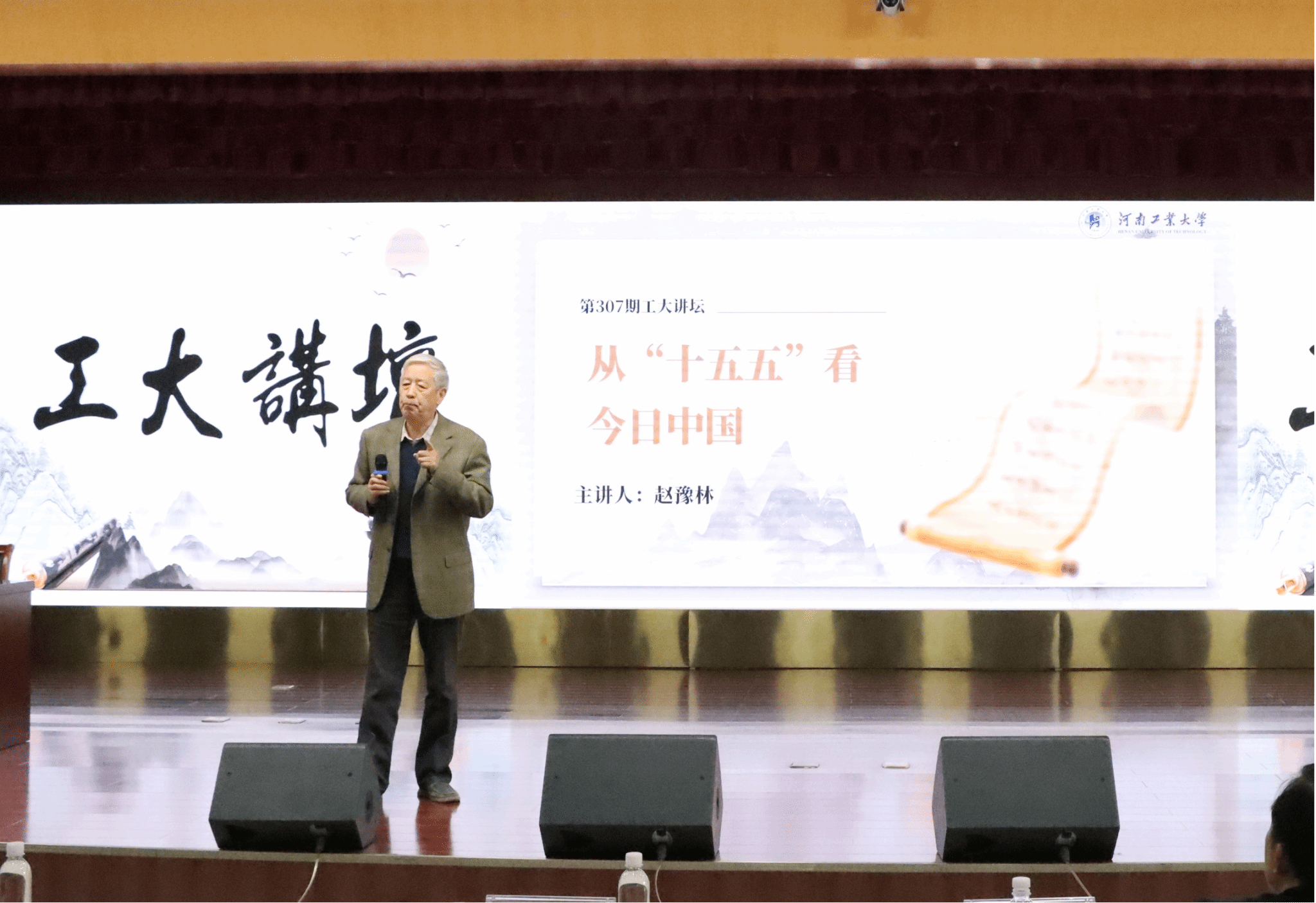11月4日下午,由党委宣传部、校团委主办,管理学院承办的第307期工大讲坛在莲花街校区学术报告中心D303报告厅成功举办。特邀我校关心下一代工作委员会常务副主任、原常务副校长赵豫林教授做客工大讲坛,本期讲坛以“从‘十五五’看今日中国”为题。校团委书记高泉、管理学院党委书记李国仓、党委副书记曹启娥,师生代表共计400余人参加本次讲坛。讲坛由李国仓主持。