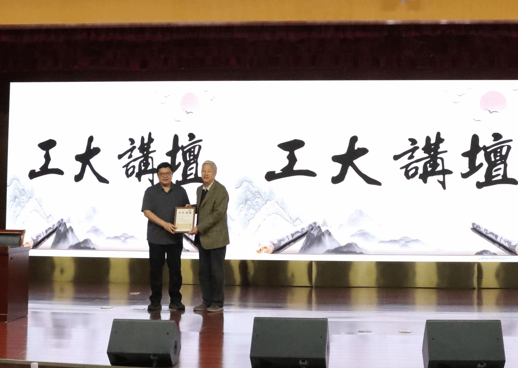 活动开篇,高泉代表学校向赵豫林教授赠送工大讲坛纪念海报并合影留念。