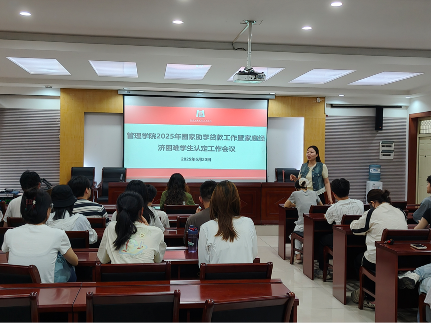 为推进学院高校国家助学贷款和家庭经济困难学生认定工作的顺利进行,确保学生资助工作的精准度和科学化,6月20日,管理学院在3543会议室召开2025年国家助学贷款工作暨家庭经济困难学生认定工作会议。学院学工办主任王风云、资助工作负责老师冯梅、各年级生活委员和资助助理等同学参加了会议。