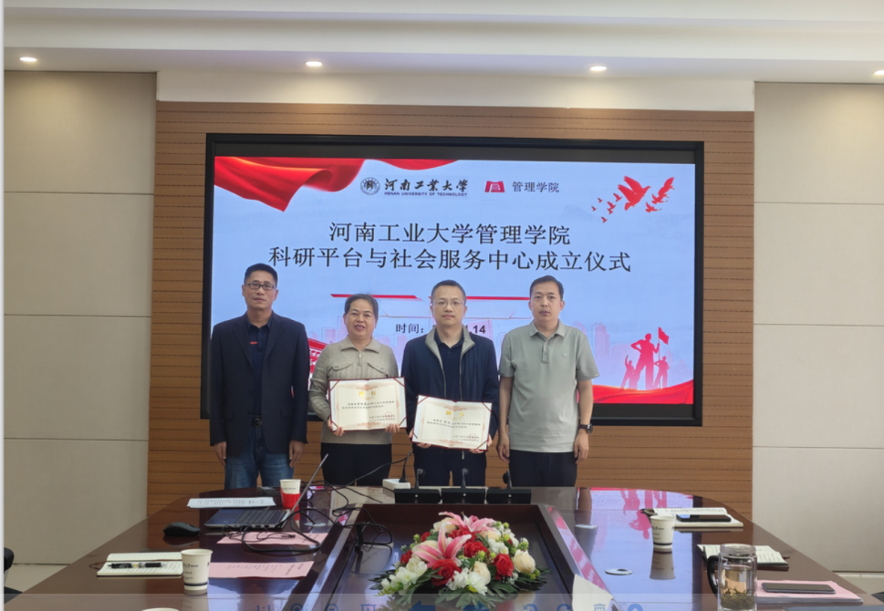 4月14日上午,河南工业大学管理学院科研平台与社会服务中心成立仪式在莲花街校区博识楼3558会议室举行。管理学院班子成员、各系教师代表参加本次仪式,仪式由管理学院副院长穆庆榜主持。
