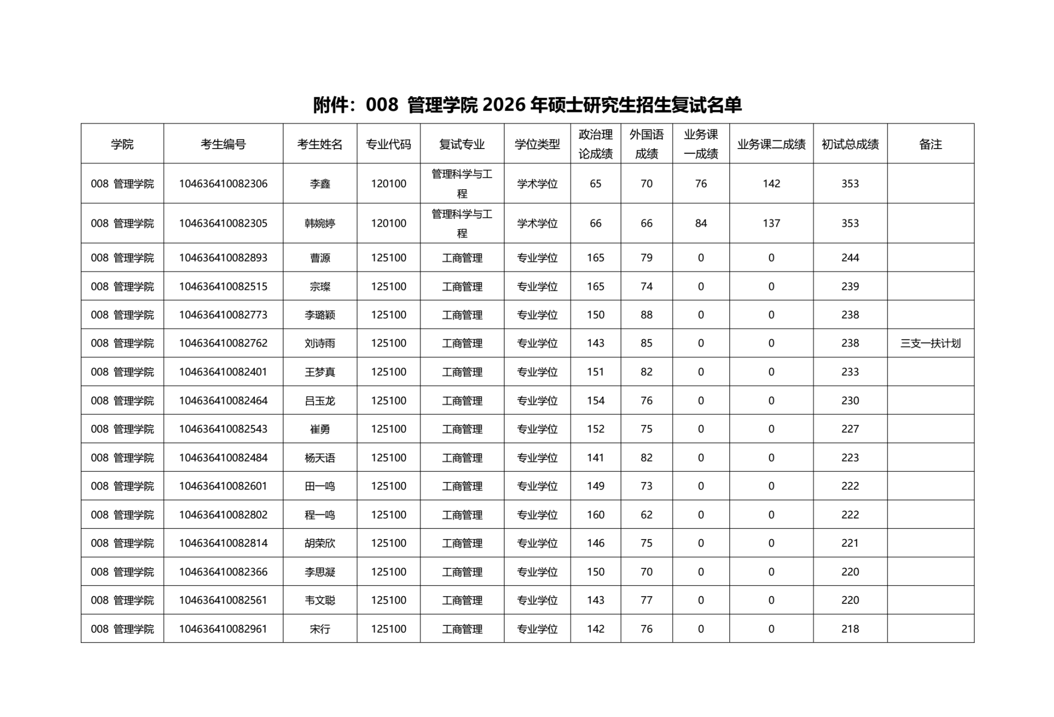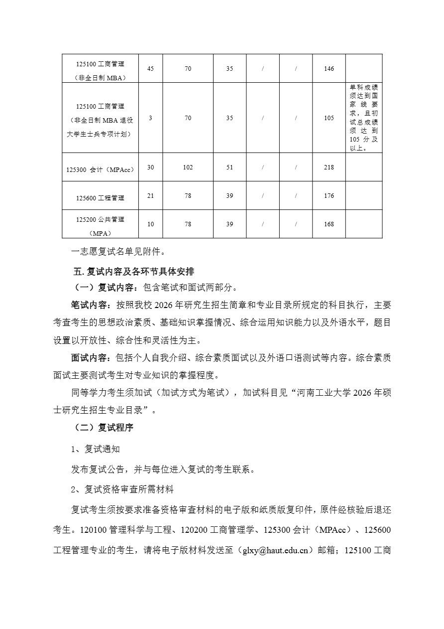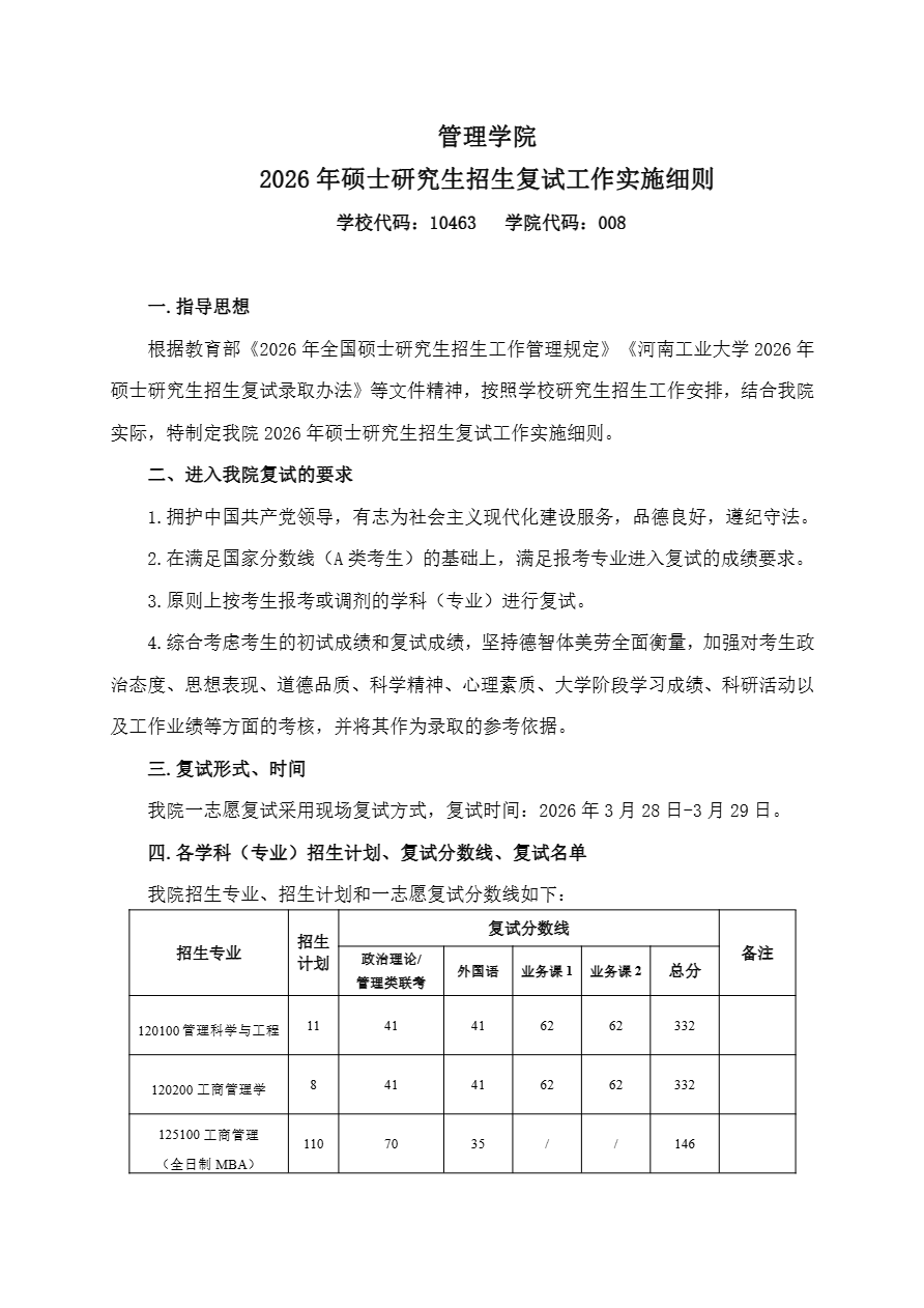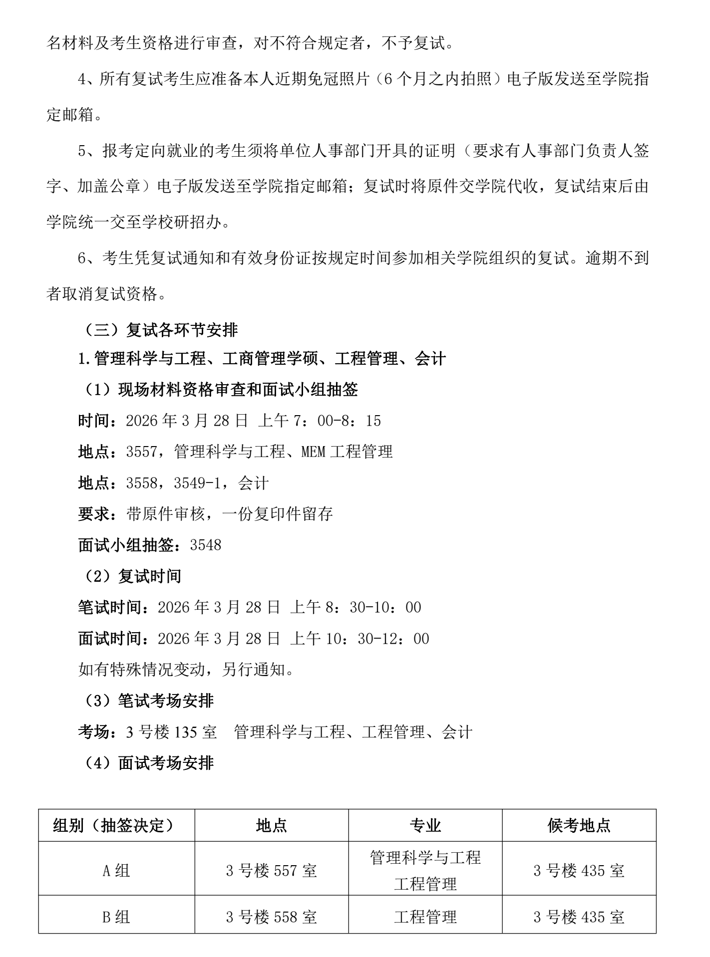 管理学院 2026 年硕士研究生招生复试工作实施细则