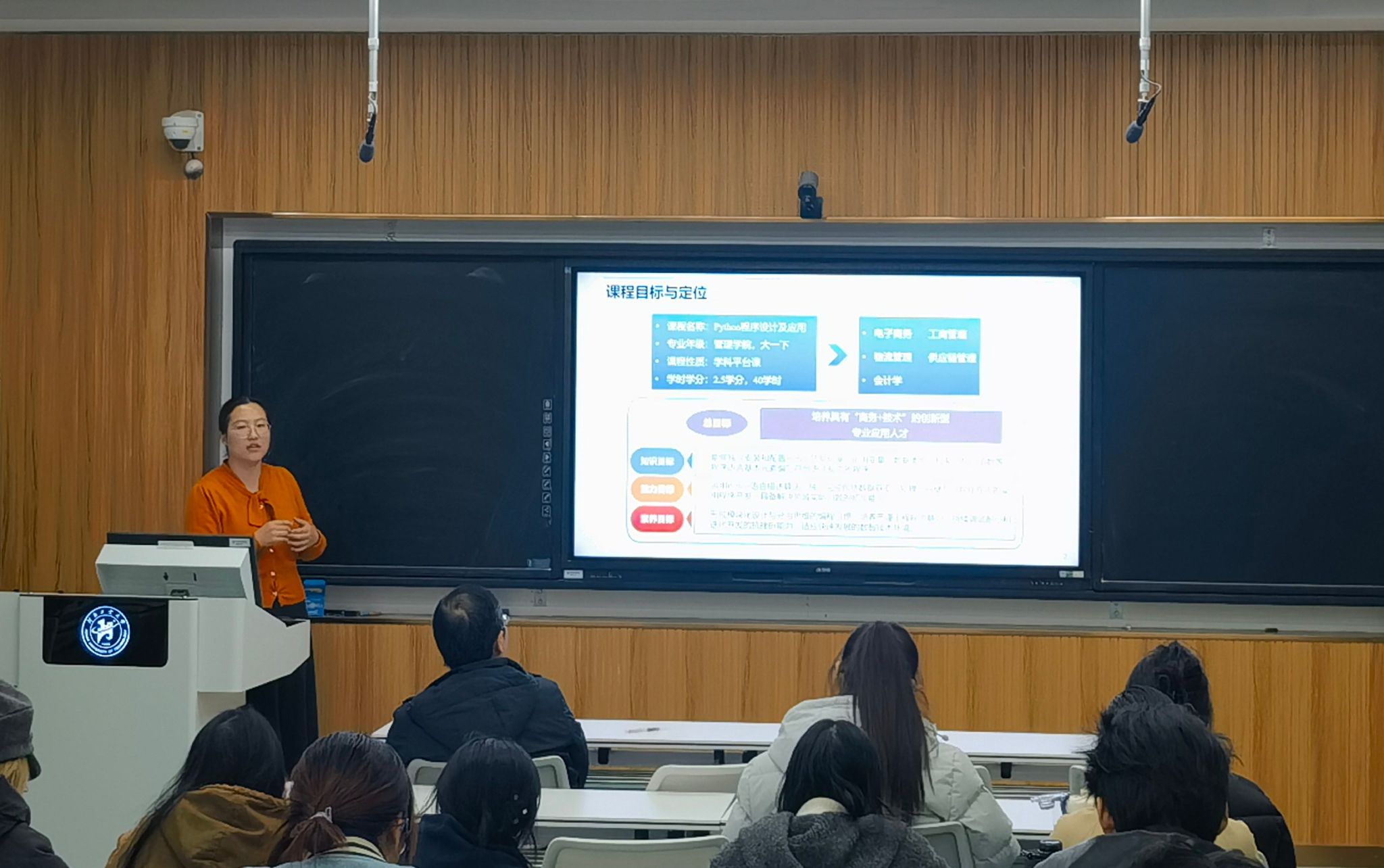 为进一步增强教师课堂教学能力,加速推进学科平台课教学改革进程,11月25日下午,管理学院于3228智慧教室组织了学科平台课《Python程序设计及应用》教学观摩研讨活动。副院长韩江、课程组负责人雷兵教授、课程组全体教师以及24级数字创专业全体学生参与此次活动。