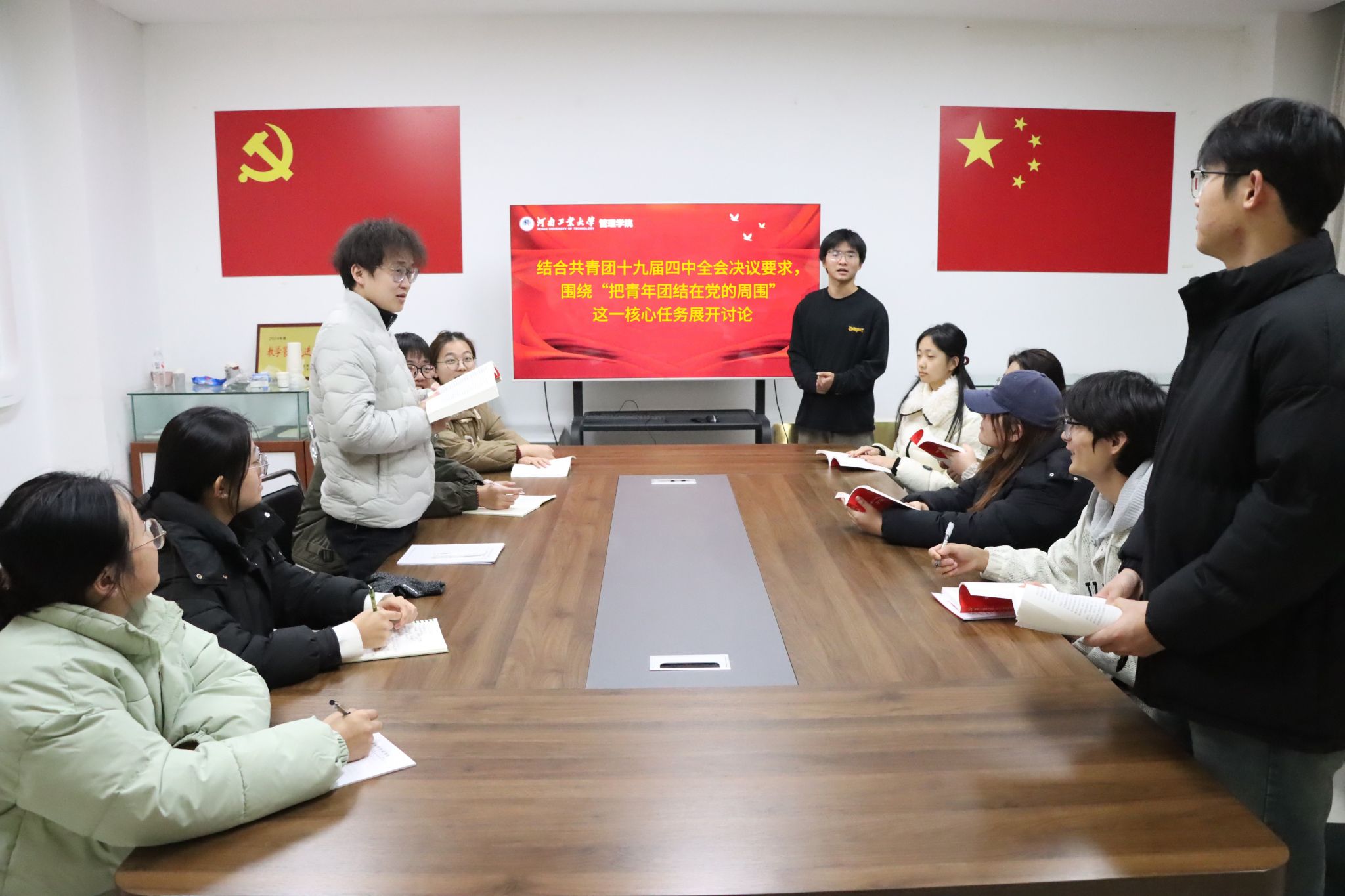 随后,大家又结合中国共产主义青年团第十九届中央委员会第四次全体会议决议要求,围绕 “把青年团结在党的周围” 这一核心任务展开讨论。大家纷纷表示,“深化青年思想引领”“组织动员青年投身现代化建设” 的工作方向,为今后的团学工作明确了实践路径。作为联系同学的桥梁纽带,团学骨干要主动扛起责任,从科技创新、乡村振兴、粮食安全这些同学们关心的领域入手,找准大家成长成才的发力点,通过开展丰富多彩的校园活动,激发更多同学投身现代化建设的积极性,让青春活力真正转化为建功立业的实际行动。